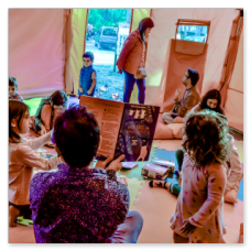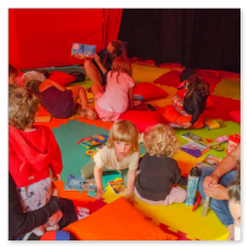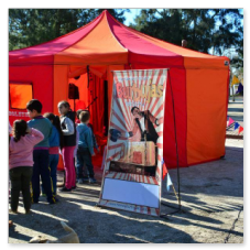 La Biblioteca “ Pulga Cuento” se desarrolla en una carpa móvil que evoca una tienda circense, diseñada especialmente para su traslado y montaje en espacios no convencionales. Su interior se encuentra acondicionado con pisos de goma eva y almohadones de colores que conforman una plaza blanda, brindando comodidad a los potenciales lectores. Posee una colección de libros para las infancias que abarca distintos géneros literarios, temáticas y materialidades. Este acervo de libros se encuentra exhibido en estanterías de estilo Montessori para facilitar el acceso autónomo de los niños. MÁS INFO